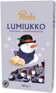 Panda Lumiukko valkosuklaakonvehdit pitävät sisällään herkullisen mustikka-maitotryffelitäytteen.