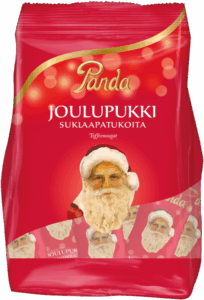 Panda Joulupukki on pumpulinpehmeä toffeevaahtonougat patukka, joka on päällystetty tuoreella maitosuklaalla. Yksittäispakattu herkku sopii vaikka kuuseen koristeeksi!
