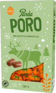 Poro suklaatryffelikonvehti on täyteläinen ja herkullinen koko perheen suosikki, ja myös gluteeniton sekä palmuöljytön. Poro suklaatryffelit ovat nopeasti muodostuneet klassikoiksi, sillä konvehdit lanseerattiin vasta jouluun 2021. Pandan jouluiset käärityt konvehdit ovat löytäneet paikkansa suomalaisen kuluttajan sydämessä niin lahjoina kun tunnelman luojina.