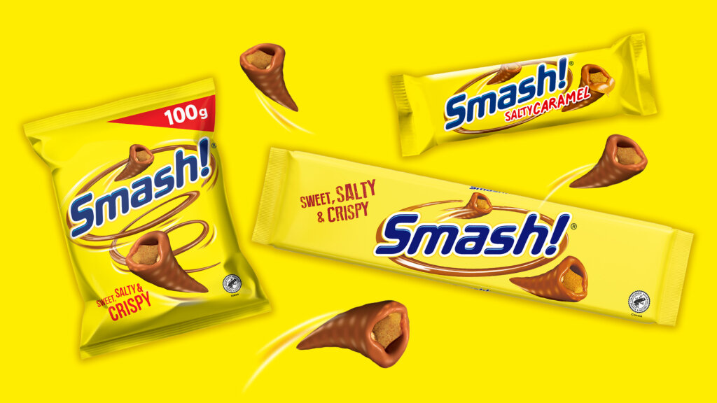 Olitpa sitten upottamassa kätesi pussiin, joka on täynnä näitä vastustamattomia herkkuja, tai nautiskelemassa erityistä Smash! Salty Caramel -patukkaamme maitosuklaan alla, valmistaudu makuelämykseen, jota et löydä mistään muualta maailmasta.