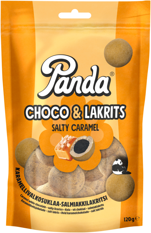 Salmiakkilakritsipaloja karamellin makuisella valkosuklaalla (48 %) ja ohuella raekuorella.