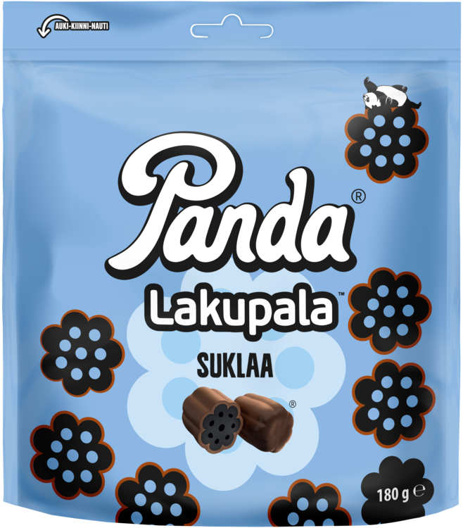 Panda Lakupala suklaassa ensimmäisenä kielesi kohtaa samettisen suklaan, jonka jälkeen makunystyröitä hivelee aidon ja oikean Panda-lakun pehmeys. Lakusuosikki on pukenut ylleen ylellisen maitosuklaisen asun. Tähän ei voi kuin ihastua! –