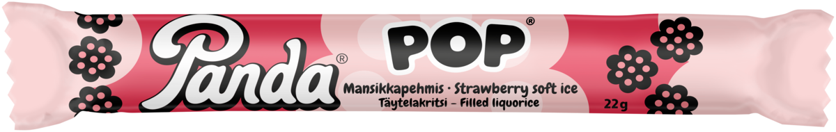 Panda on POP! Suussa sulavan pehmeän lakritsikuoren sisällä mansikkapehmiksen makuinen sisus. Täydellinen maku ja koko! Vegaaninen. –