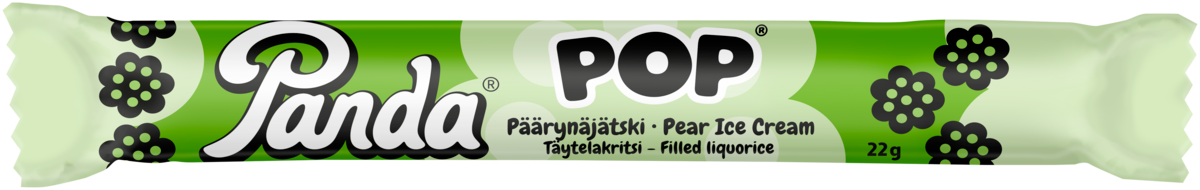 Panda on POP! Suussa sulavan pehmeän lakritsikuoren sisällä päärynäjätskin makuinen sisus. Täydellinen maku ja koko! Vegaaninen. –