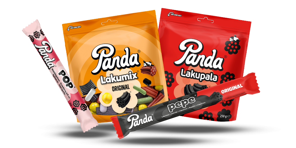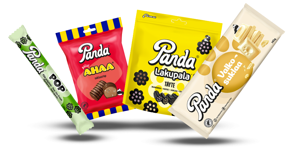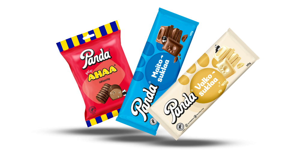 Panda®-tuotteista löydät sataa sorttia hyvää, pidit sitten klassikkomakeisista, uusista sekoituksista tai erikoisherkuista. Ja löydäthän valikoimasta tietysti myös joulukarkit ja joulusuklaat. Aina tuoreet Panda-tuotteet valmistetaan huolella ja rakkaudella keskellä Suomea.